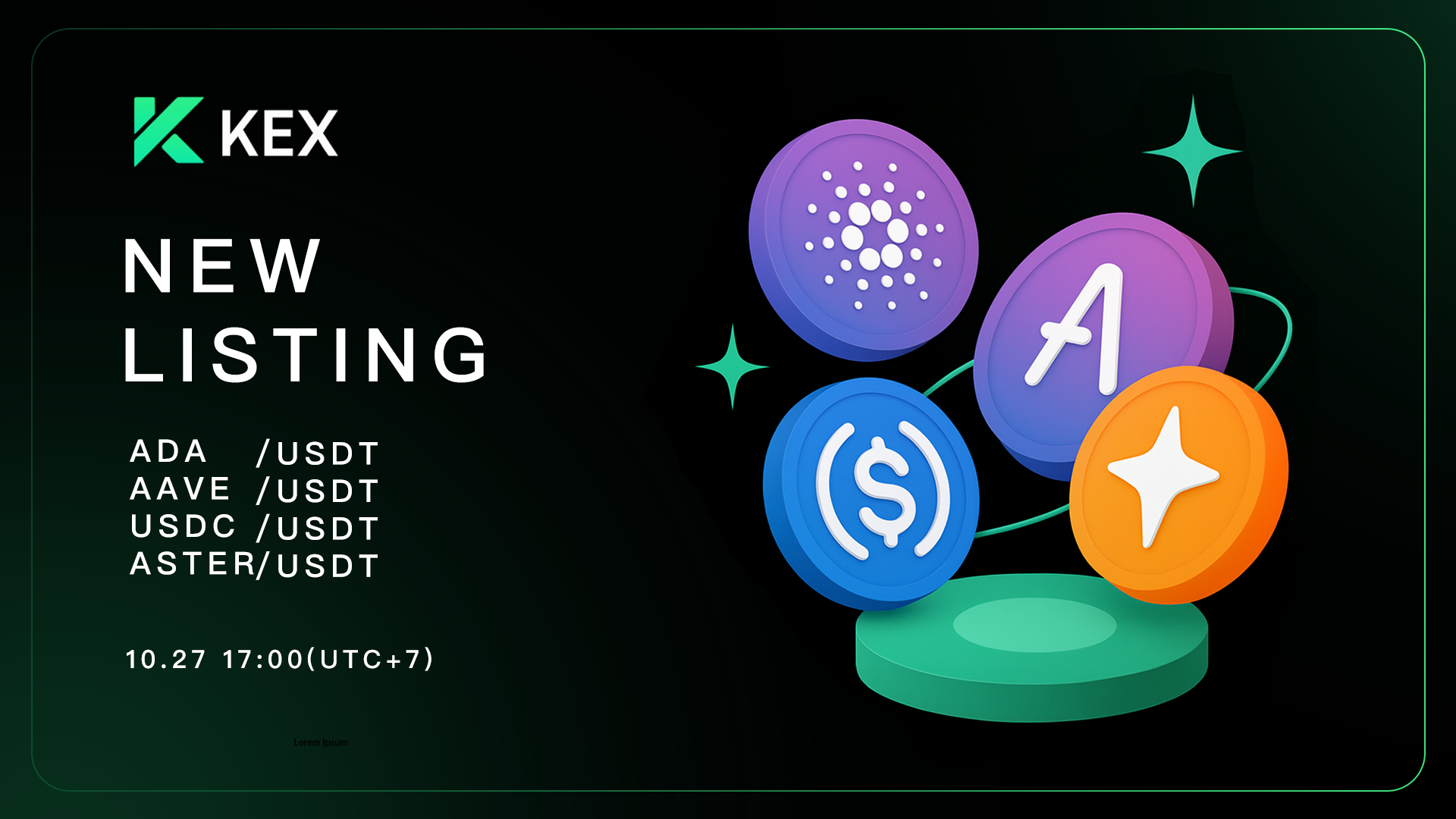 KEX新币上线|ADA、AAVE、USDC、ASTER