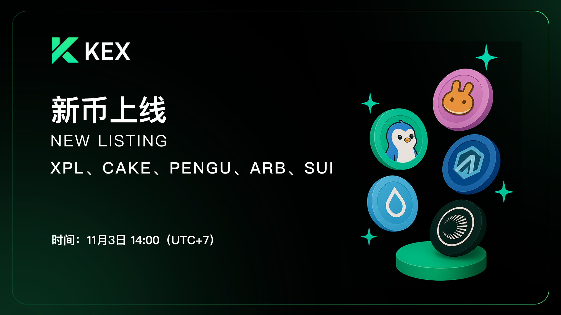 KEX新币上线|XPL、CAKE、PENGU、ARB、SUI